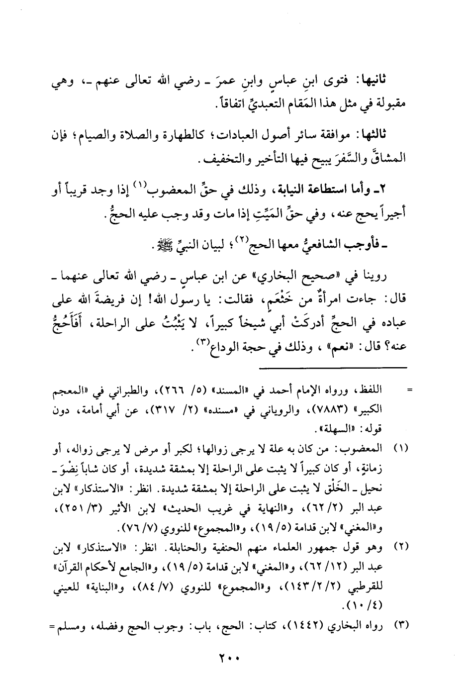 2 - وأما استطاعة النيابة، وذلك في حقِّ المعضوب (¬1) إذا وجد قريبًا أو أجيرًا يحج عنه، وفي حقِّ المَيِّتِ إذا مات وقد وجب عليه الحجُّ.