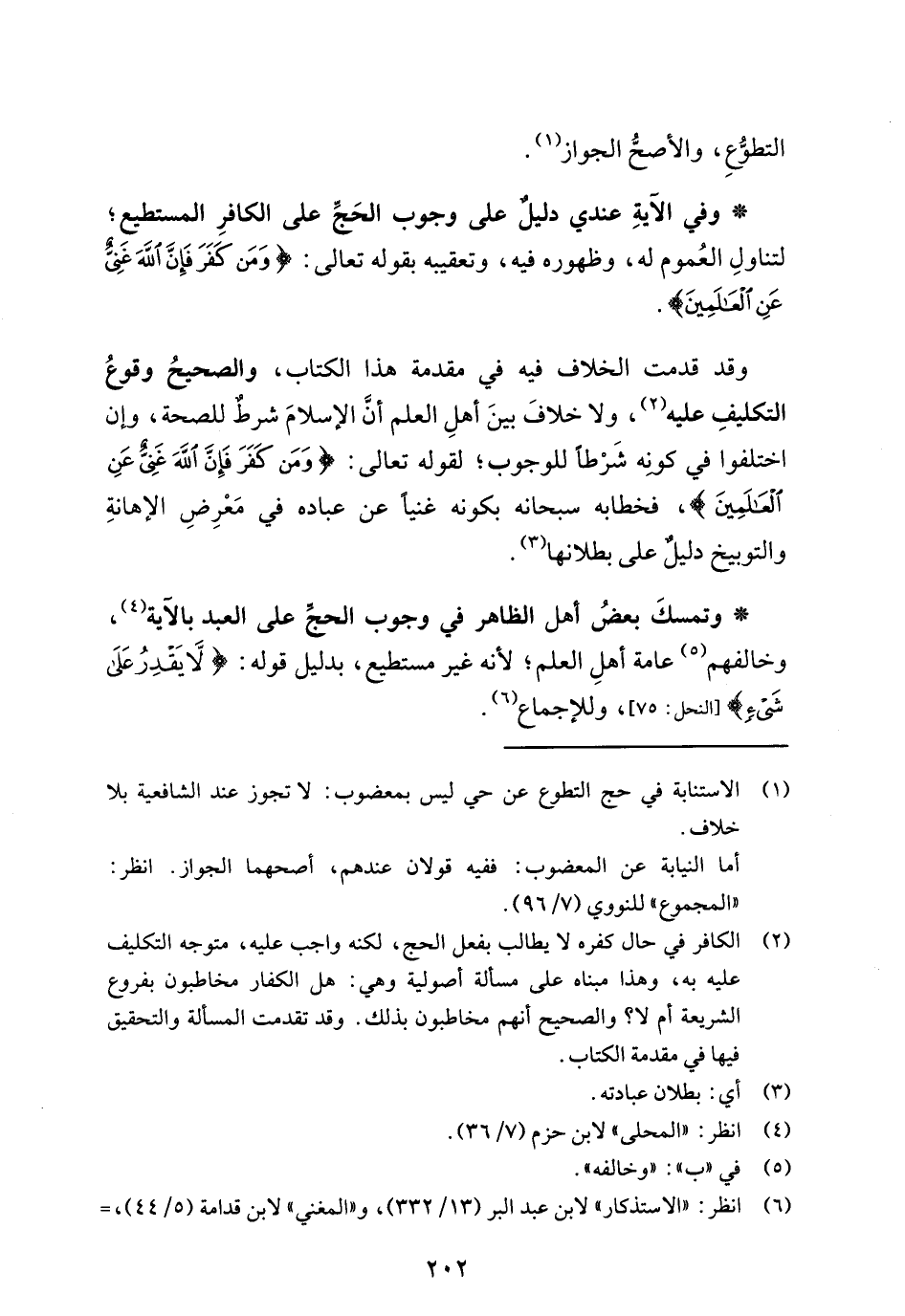 (¬2) الكافر في حال كفره لا يطالب بفعل الحج، لكنه واجب عليه، متوجه التكليف عليه به، وهذا مبناه على مسألة أصولية وهي: هل الكفار مخاطبون بفروع الشريعة أم لا؟ والصحيح أنهم مخاطبون بذلك. وقد تقدمت المسألة والتحقيق فيها في مقدمة الكتاب.