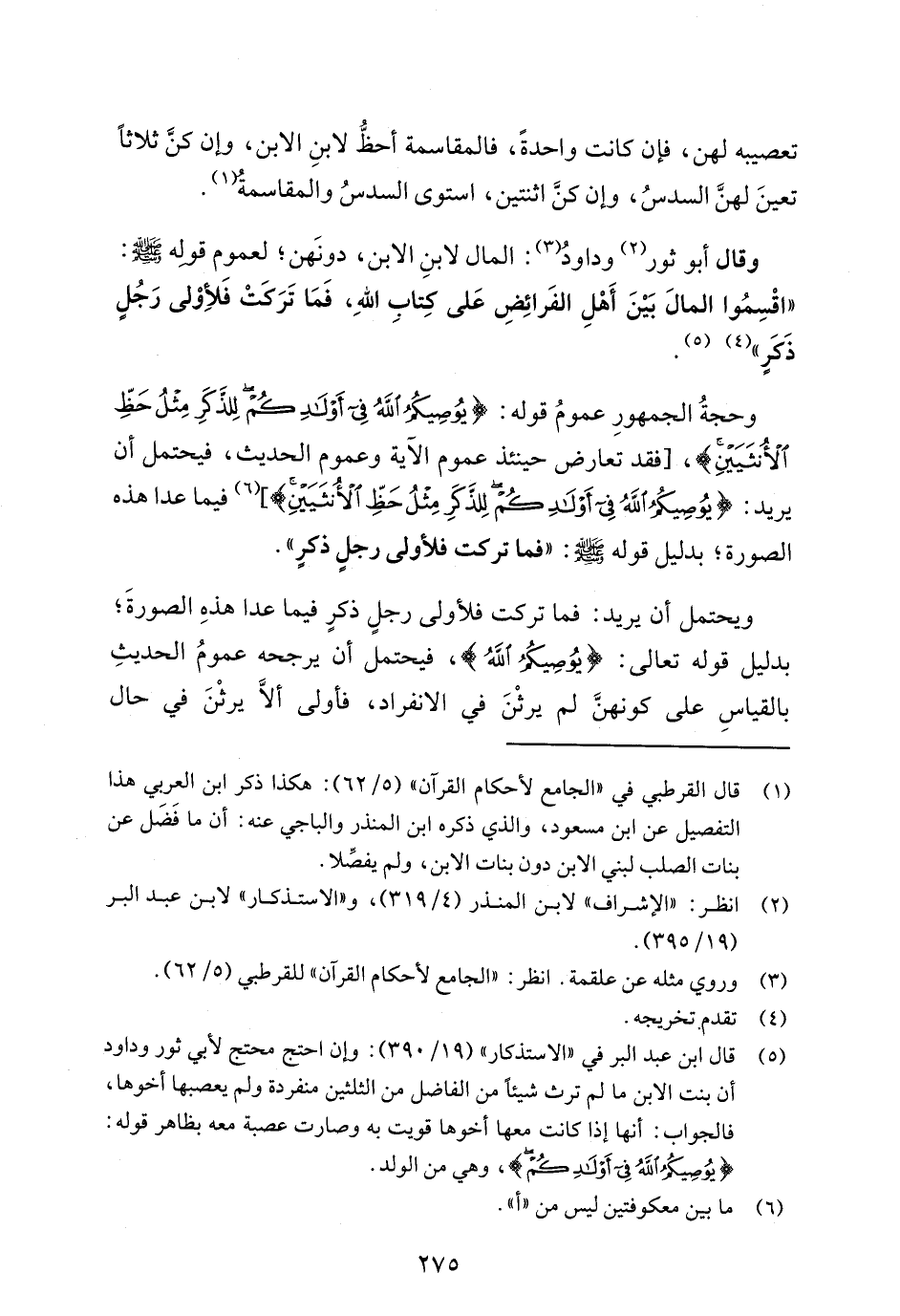 (¬1) قال القرطبي في "الجامع لأحكام القرآن" (5/ 62): هكذا ذكر ابن العربي هذا التفصيل عن ابن مسعود، والذي ذكره ابن المنذر والباجي عنه: أن ما فَضَل عن بنات الصلب لبني الابن دون بنات الابن، ولم يفصِّلا.