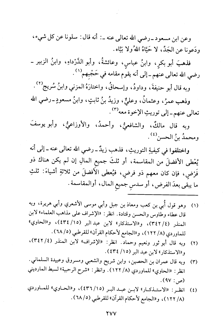 وذهب عمرُ، وعثمانُ، وعليٌّ، وزيدُ بنُ ثابتٍ، وابنُ مسعودٍ -رضي الله تعالى عنهم- إلى توريثِ الإخوة معه (¬3).
