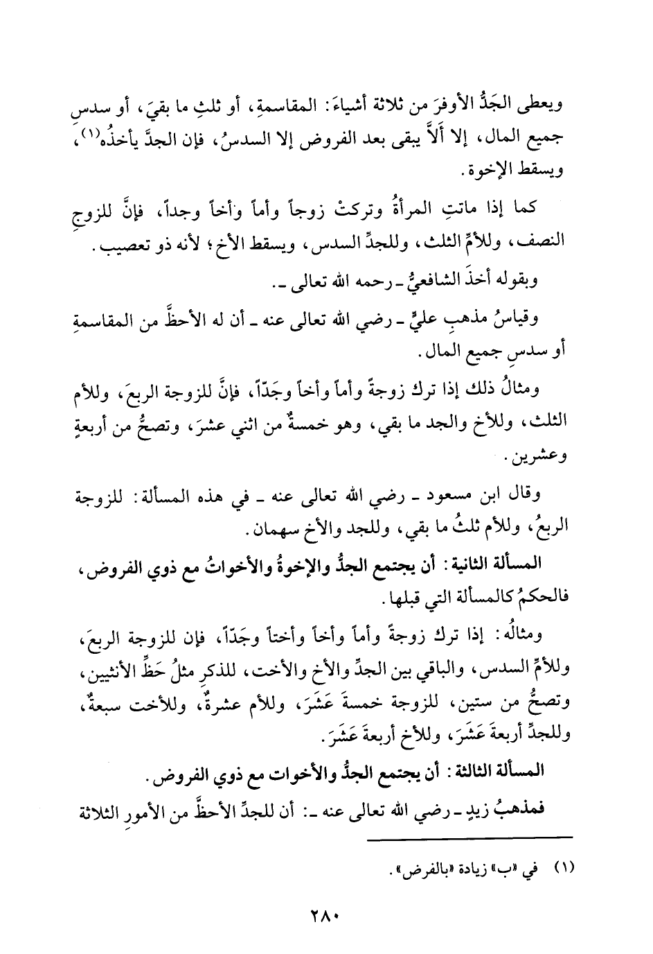 وقياسُ مذهبِ علي -رضي الله تعالى عنه- أن له الأحظَّ من المقاسمةِ أو سدسِ جميع المال.