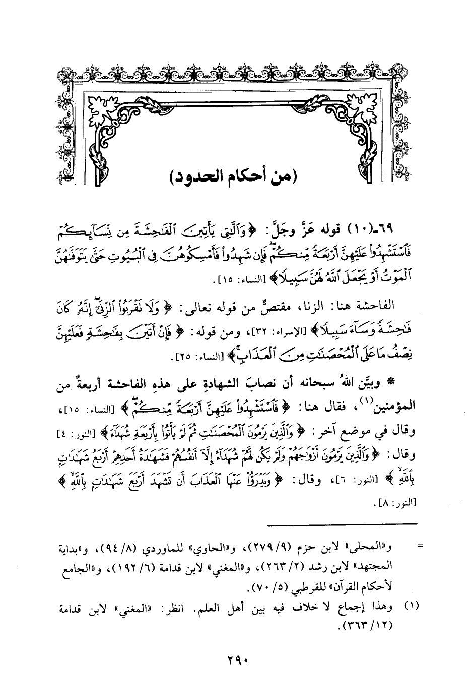 69 - (10) قوله عَزَّ وجَل: {وَاللَّاتِي يَأْتِينَ الْفَاحِشَةَ مِنْ نِسَائِكُمْ فَاسْتَشْهِدُوا عَلَيْهِنَّ أَرْبَعَةً مِنْكُمْ فَإِنْ شَهِدُوا فَأَمْسِكُوهُنَّ فِي الْبُيُوتِ حَتَّى يَتَوَفَّاهُنَّ الْمَوْتُ أَوْ يَجْعَلَ اللَّهُ لَهُنَّ سَبِيلًا} [النساء: 15].