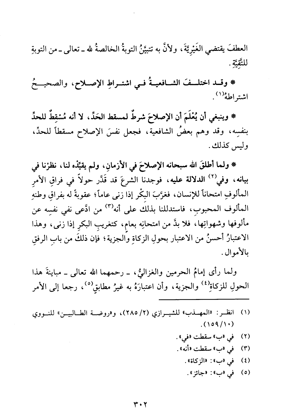 * وينبغي أن يُعْلَمَ أن الإصلاحَ شرطٌ لمسقط الحَدِّ، لا أنه مُسْقِطٌ للحدِّ بنفسِه، وقد وهم بعضُ الشافعية، فجعل نفسَ الإصلاح مسقطًا للحدِّ، وليس كذلك.