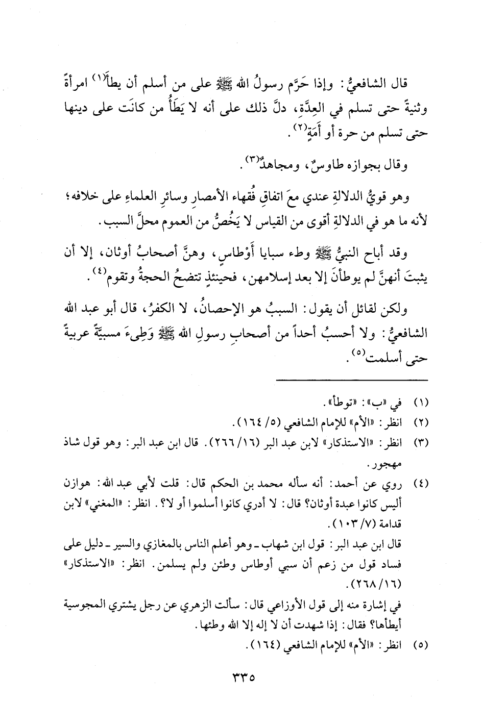 ولكن لقائل أن يقول: السببُ هو الإحصانُ، لا الكفرُ، قال أبو عبد الله الشافعيُّ: ولا أحسبُ أحدًا من أصحابِ رسولِ الله - صلى الله عليه وسلم - وَطِئَ مسبيَّةً عربيةً حتى أسلمت (¬5).