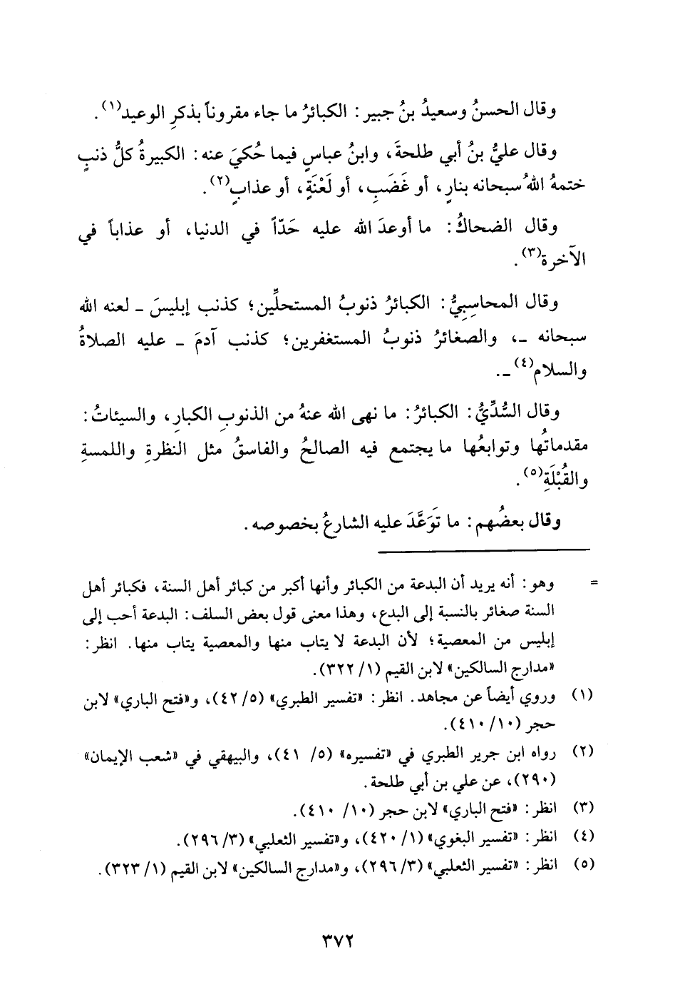 وقال الحسنُ وسعيدُ بنُ جبير: الكبائرُ ما جاء مقرونًا بذكرِ الوعيد (¬1).