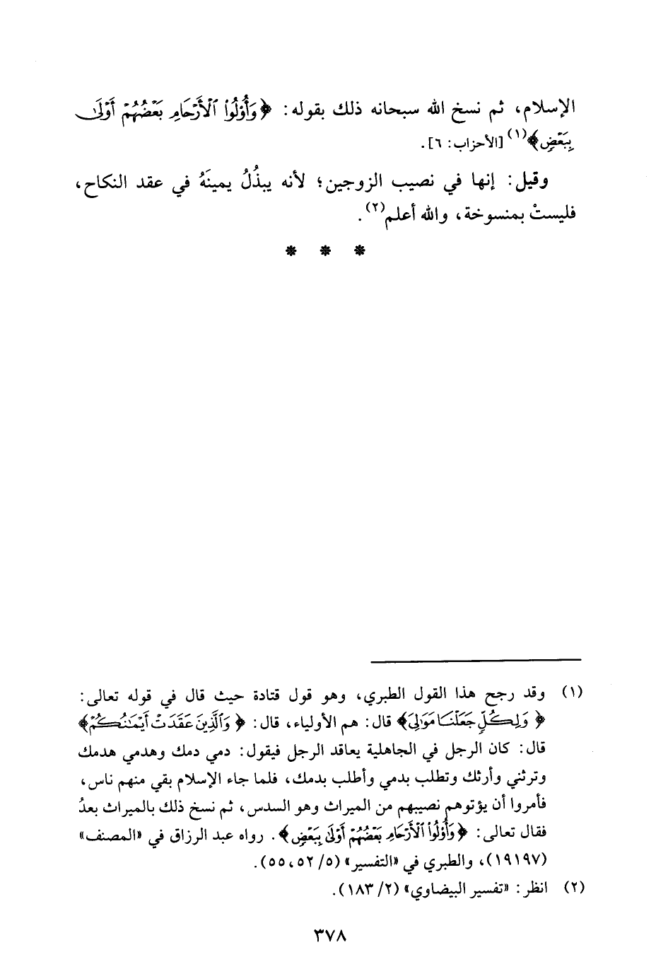 الإسلام، ثم نسخ الله سبحانه ذلك بقوله: {وَأُولُو الْأَرْحَامِ بَعْضُهُمْ أَوْلَى بِبَعْضٍ} (¬1) [الأحزاب: 6].