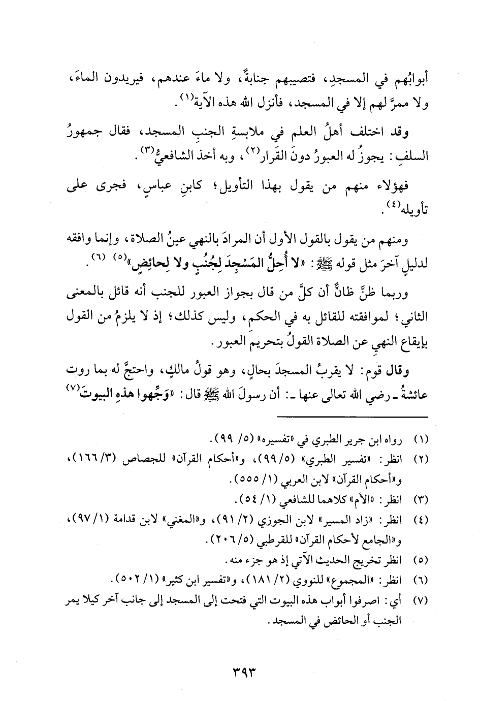 وقد اختلف أهلُ العلم في ملابسةِ الجنبِ المسجد، فقال جمهورُ السلفِ: يجوزُ له العبورُ دونَ القَرار (¬2)، وبه أخذ الشافعيُّ (¬3).