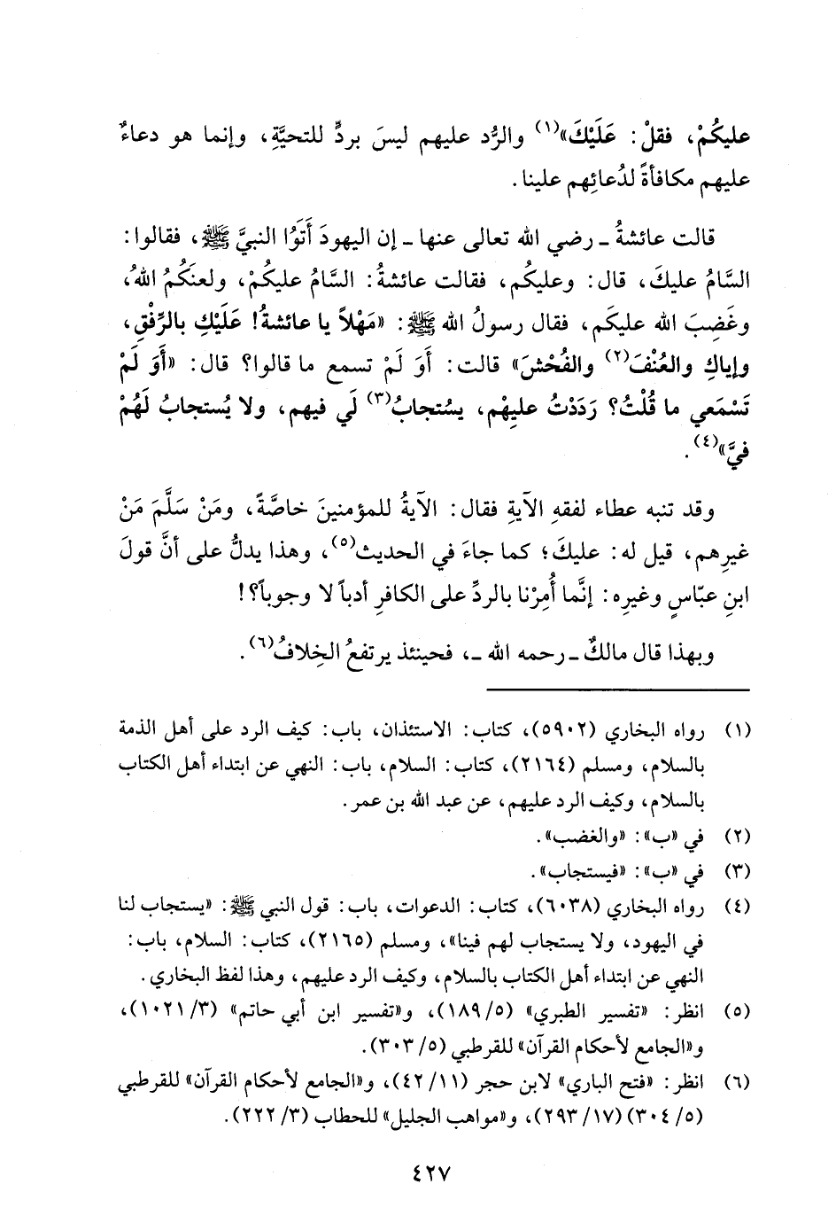 (¬4) رواه البخاري (6038)، كتاب: الدعوات، باب: قول النبي - صلى الله عليه وسلم -: "يستجاب لنا في اليهود، ولا يستجاب لهم فينا"، ومسلم (2165)، كتاب: السلام، باب: النهي عن ابتداء أهل الكتاب بالسلام، وكيف الرد عليهم، وهذا لفظ البخاري.