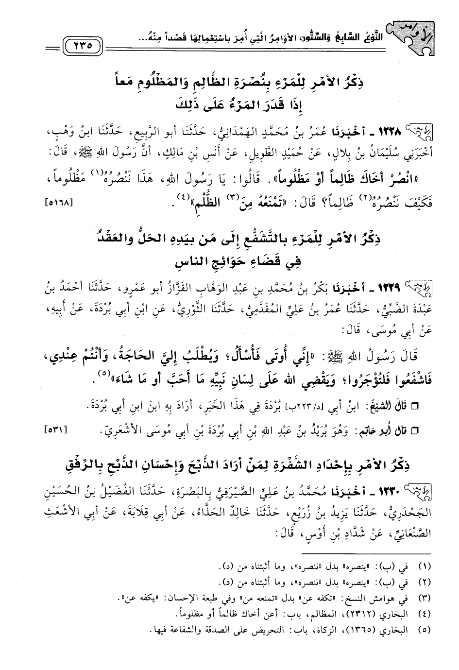 ذِكْرُ الأَمْرِ لِلْمَرْءِ بِنُصْرَةِ الظَّالِمِ وَالْمَظْلُومِ مَعًا، إِذَا قَدَرَ الْمَرْءُ عَلَى ذَلِكَ.