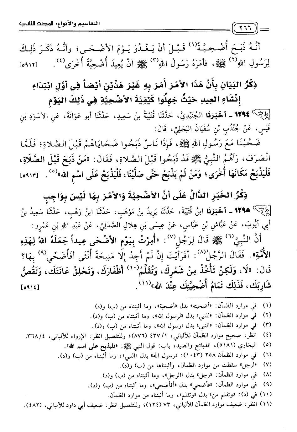 ذِكْرُ الْبَيَانِ بِأَنَّ هَذَا الأَمْرَ أُمِرَ بِهِ غَيْرُ هَذَيْنِ أَيْضًا فِي أَوَّلِ ابْتِدَاءِ إِنْشَاءِ الْعِيدِ حَيْثُ جَهِلُوا كَيْفِيَّةَ الأُضْحِيَّةِ فِي ذَلِكَ الْيَوْمِ.