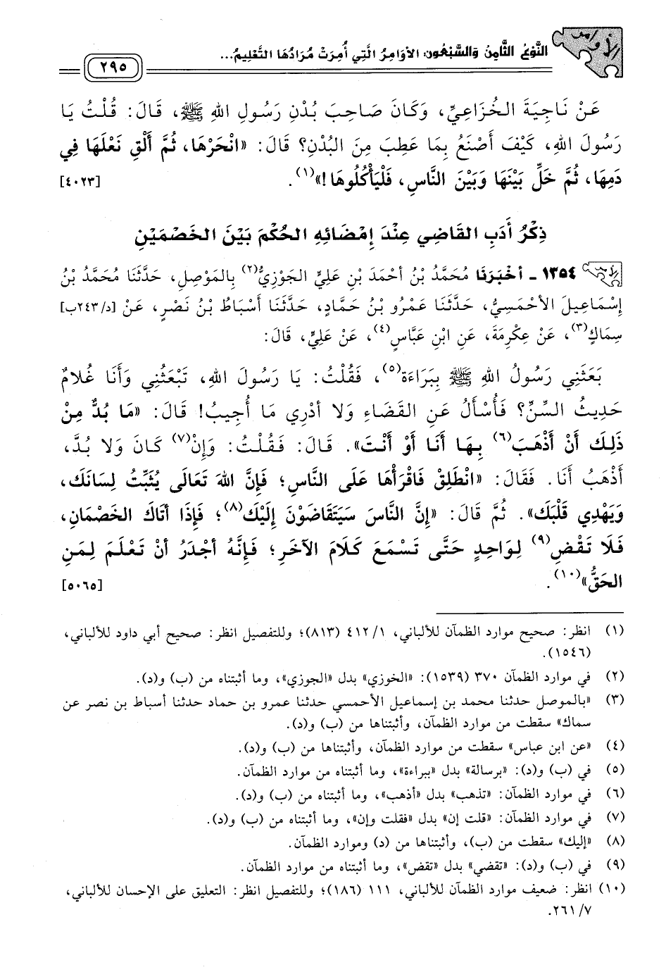 ذِكْرُ أَدَبِ الْقَاضِي عِنْدَ إِمْضَائِهِ الْحُكْمَ بَيْنَ الْخَصْمَيْنِ.