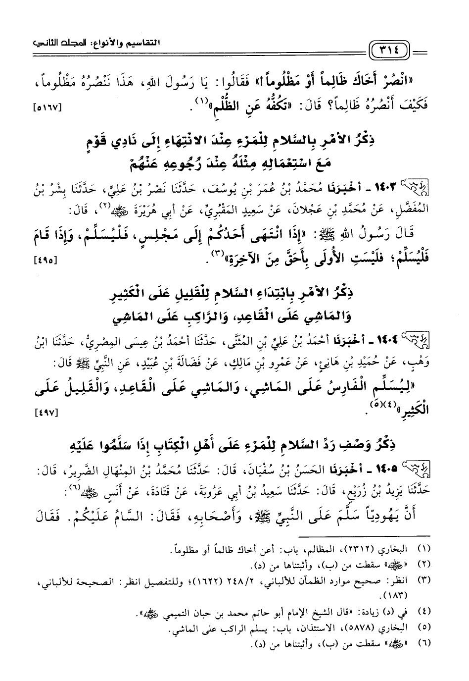 ١٤٠٥ - أَخبَرنا الْحَسَنُ بْنُ سُفْيَانَ، قَالَ: حَدثنا مُحَمَّدُ بْنُ الْمِنْهَالِ الضَّرِيرُ، قَالَ: حَدثنا يَزِيدُ بْنُ زُرَيْعٍ، قَالَ: حَدثنا سَعِيدُ بْنُ أَبِي عَرُوبَةَ، عَنْ قَتَادَةَ، عَنْ أَنَسٍ رَضِيَ اللهُ عَنْهُ، أَنَّ يَهُودِيًّا سَلَّمَ عَلَى النَّبِيِّ صَلى الله عَلَيه وسَلم، وَأَصْحَابِهِ، فقَالَ: السَّامُ عَلَيْكُمْ، فقَالَ النَّبِيُّ صَلى الله عَلَيه وسَلم: "أَتَدْرُونَ مَا قَالَ؟ " قَالُوا: نَعَمْ، سَلَّمَ عَلَيْنَا، قَالَ: "لَا، إِنَّمَا قَالَ: السَّامُ عَلَيْكُمْ، أَيْ: تُسَامُونَ دِينَكُمْ، فَإِذَا سَلَّمَ عَلَيْكُمْ رَجُلٌ مِنْ أَهْلِ الْكِتَابِ، فَقُولُوا: وَعَلَيْكَ". [٥٠٣]