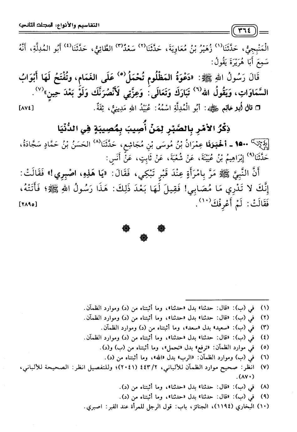 ذِكْرُ الأَمْرِ بِالصَّبْرِ لِمَنْ أُصِيبَ بِمُصِيبَةٍ فِي الدُّنْيَا.