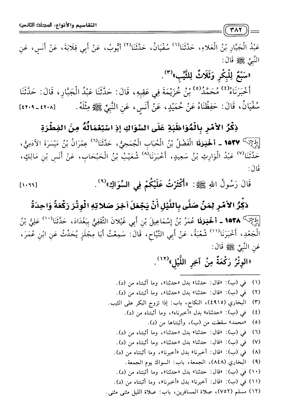 ١٥٣٧ - أَخبَرنا الْفَضْلُ بْنُ الْحُبَابِ الْجُمَحِيُّ، حَدثنا عِمْرَانُ بْنُ مَيْسَرَةَ الآدَمِيُّ، حَدثنا عَبْدُ الْوَارِثِ بْنُ سَعِيدٍ، أَخبَرنا شُعَيْبُ بْنُ الْحَبْحَابِ، عَنْ أَنَسِ بْنِ مَالِكٍ، قَالَ: قَالَ رَسُولُ اللهِ صَلى الله عَلَيه وسَلم: "أَكْثَرْتُ عَلَيْكُمْ فِي السِّوَاكِ". [١٠٦٦]
