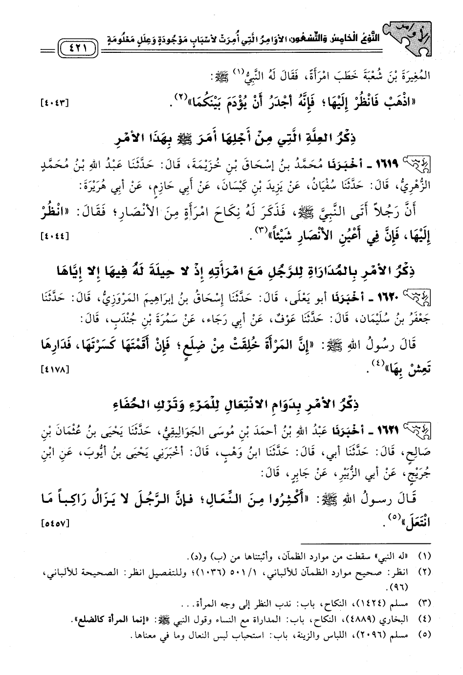 ذِكْرُ الأَمْرِ بِدَوَامِ الاِنْتِعَالِ لِلْمَرْءِ وَتَرْكِ الْحَفَاءِ.