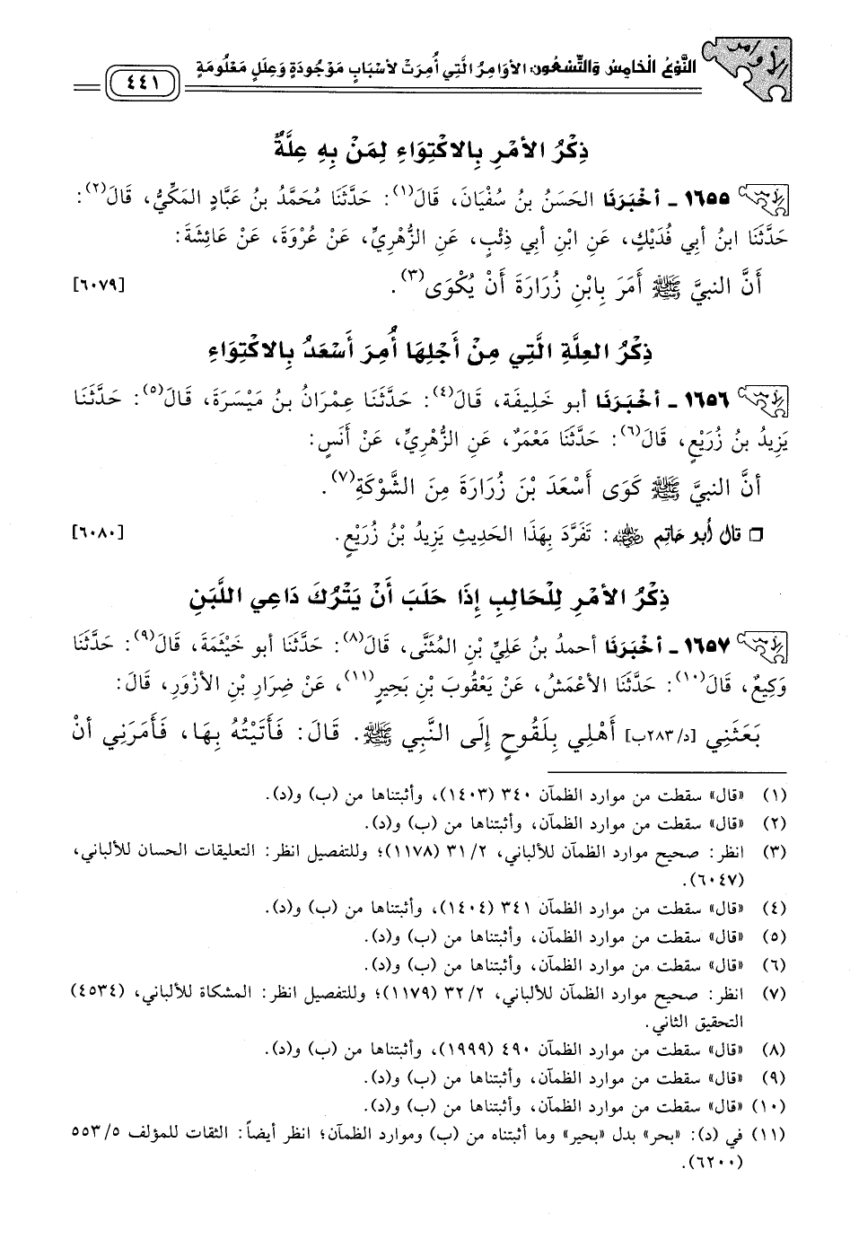 ١٦٥٥ - أَخبَرنا الْحَسَنُ بْنُ سُفْيَانَ، قَالَ: حَدثنا مُحَمَّدُ بْنُ عَبَّادٍ الْمَكِّيُّ، قَالَ: حَدثنا ابْنُ أَبِي فُدَيْكٍ، عَنِ ابْنِ أَبِي ذِئْبٍ، عَنِ الزُّهْرِيِّ، عَنْ عُرْوَةَ، عَنْ عَائِشَةَ، أَنَّ النَّبِيَّ صَلى الله عَلَيه وسَلم أَمَرَ بِابْنِ زُرَارَةَ أَنْ يُكْوَى. [٦٠٧٩]
