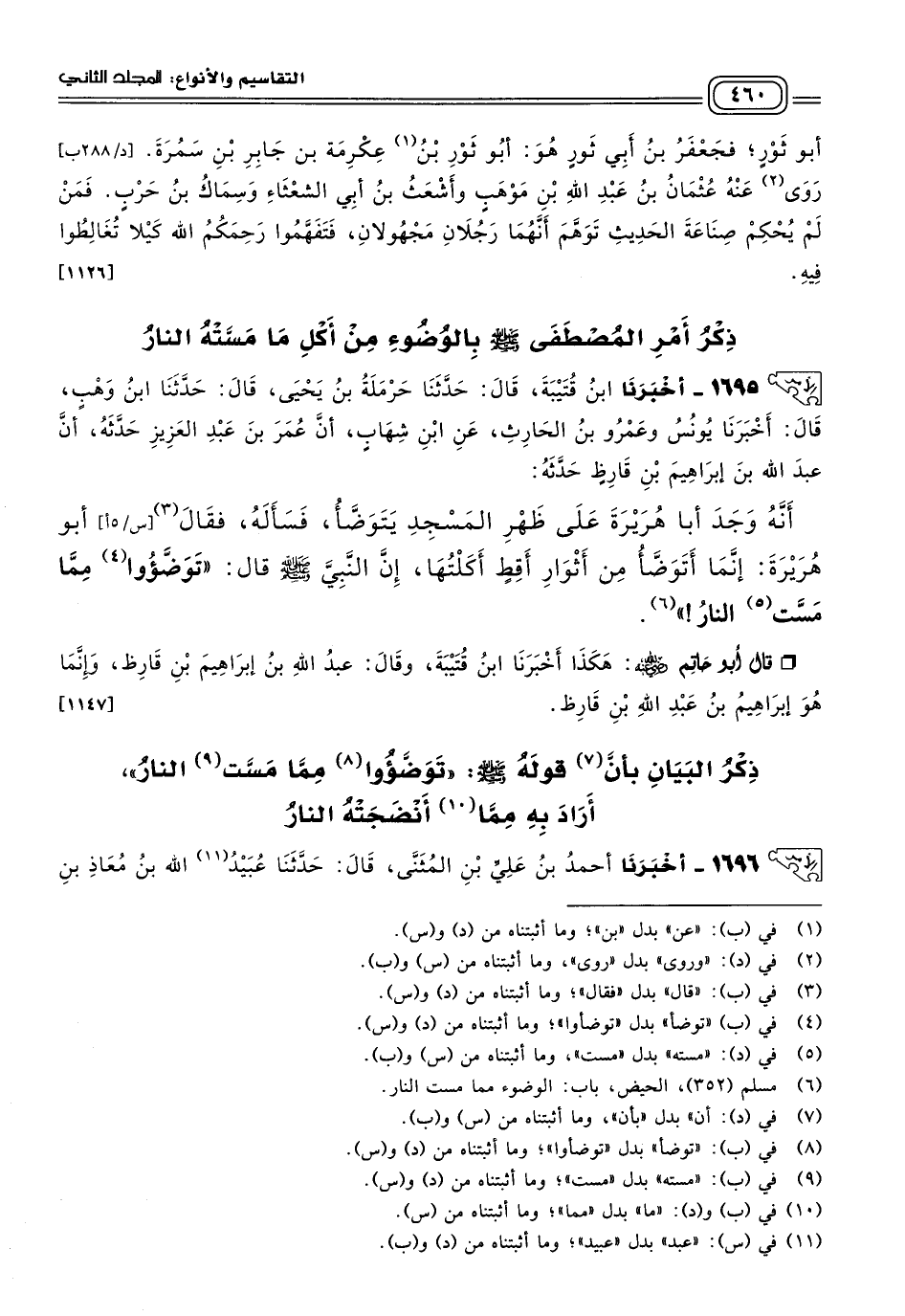 قَالَ أَبُو حَاتِمٍ رَضِيَ اللهُ عَنْهُ: هَكَذَا أَخبَرنا ابْنُ قُتَيْبَةَ، وَقَالَ: عَبْدُ اللهِ بْنُ إِبْرَاهِيمَ بْنِ قَارِظٍ، وَإِنَّمَا هُوَ إِبْرَاهِيمُ بْنُ عَبْدِ اللهِ بْنِ قَارِظٍ. [١١٤٧]