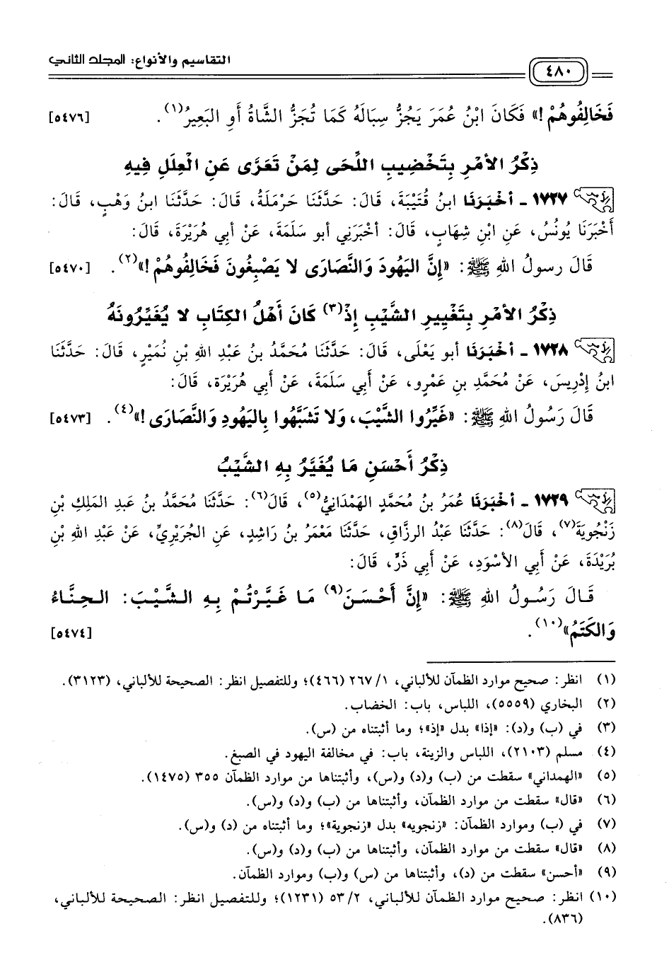 ذِكْرُ الأَمْرِ بِتَغْيِيرِ الشَّيْبِ إِذْ كَانَ أَهْلُ الْكِتَابِ لَا يُغَيِّرُونَهُ.
