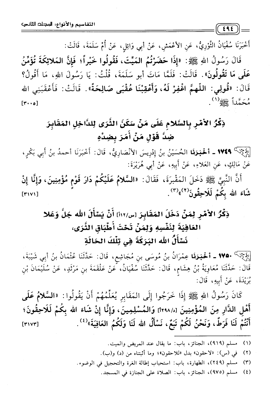 ١٧٤٩ - أَخبَرنا الْحُسَيْنُ بْنُ إِدْرِيسَ الأَنْصَارِيُّ، قَالَ: أَخبَرنا أَحْمَدُ بْنُ أَبِي بَكْرٍ، عَنْ مَالِكٍ، عَنِ الْعَلَاءِ، عَنْ أَبِيهِ، عَنْ أَبِي هُرَيْرَةَ، أَنَّ النَّبِيَّ صَلى الله عَلَيه وسَلم دَخَلَ الْمَقْبَرَةَ فَقَالَ: "السَّلَامُ عَلَيْكُمْ دَارَ قَوْمٍ مُؤْمِنِينَ، وَإِنَّا إِنْ شَاءَ اللهُ بِكُمْ لَلَاحِقُونَ". [٣١٧١]