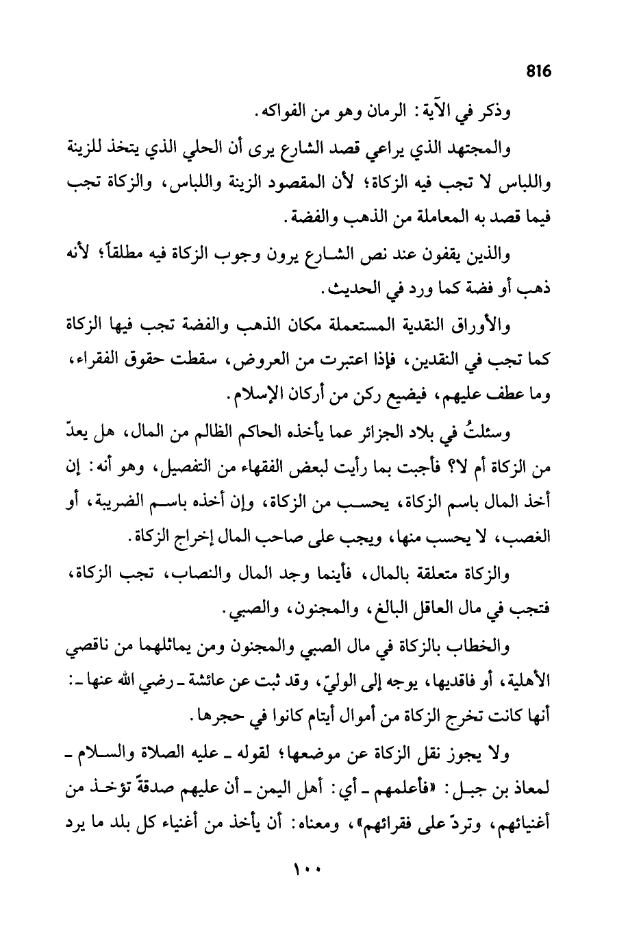 والمجتهد الذي يراعي قصد الشارع يرى أن الحلي الذي يتخذ للزينة واللباس لا تجب فيه الزكاة؛ لأن المقصود الزينة واللباس، والزكاة تجب فيما قصد به المعاملة من الذهب والفضة.