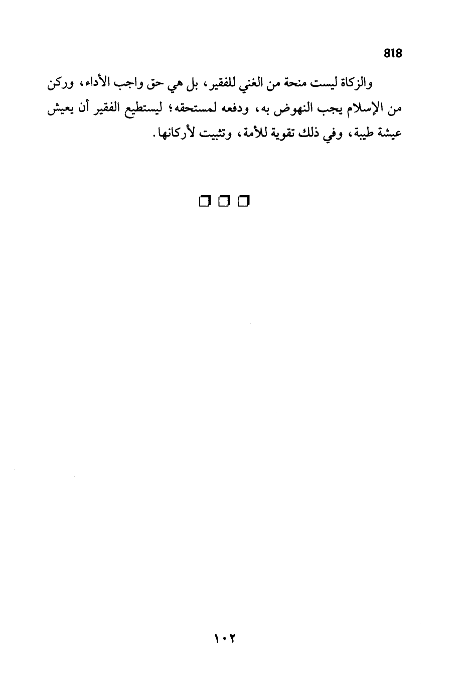 والزكاة ليست منحة من الغني للفقير، بل هي حق واجب الأداء، وركن من الإسلام يجب النهوض به، ودفعه لمستحقه؛ ليستطيع الفقير أن يعيش عيشة طيبة، وفي ذلك تقوية للأمة، وتثبيت لأركانها.
