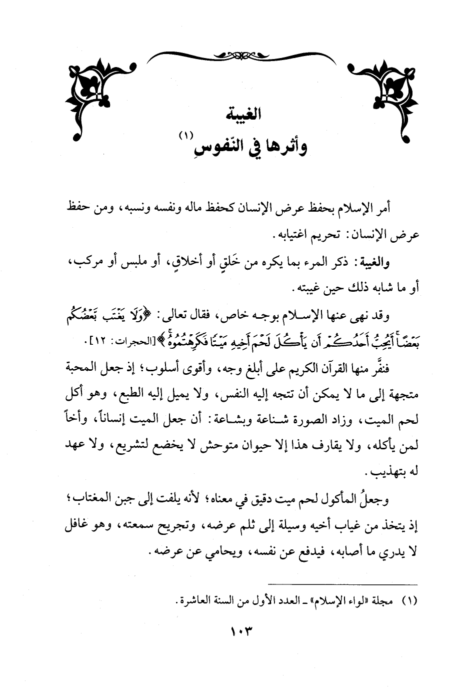 الغيبة وأثرها في النّفوسِ (¬1)