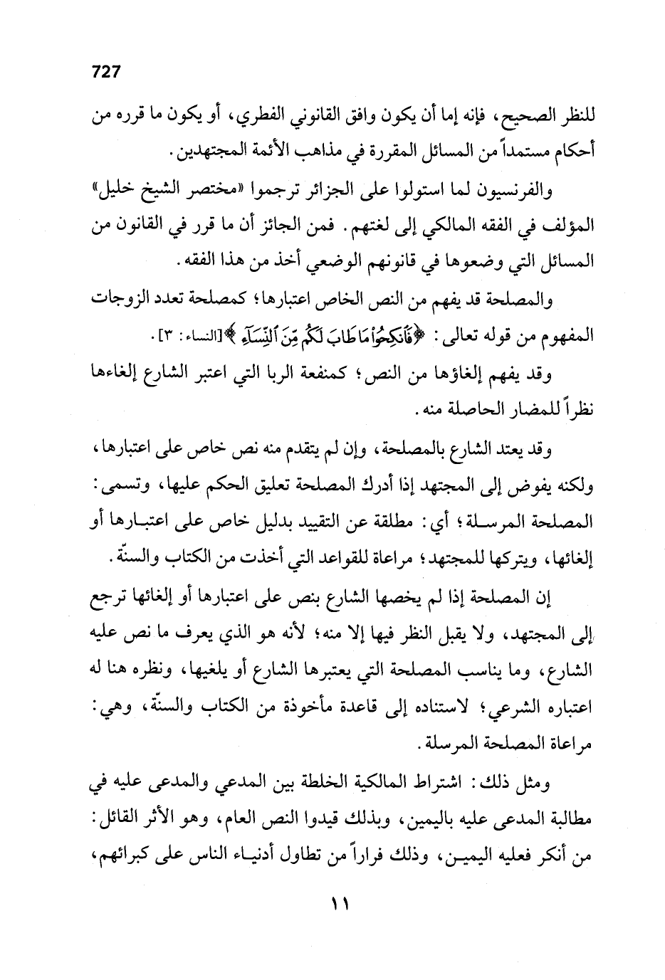 للنظر الصحيح، فإنه إما أن يكون وافق القانوني الفطري، أو يكون ما قرره من أحكام مستمداً من المسائل المقررة في مذاهب الأئمة المجتهدين.