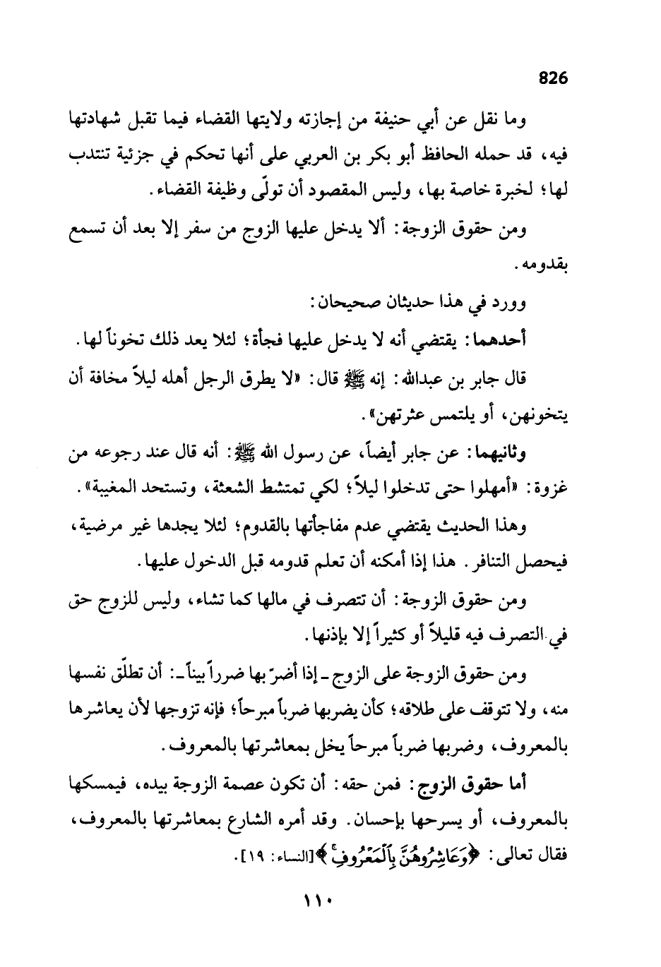 ومن حقوق الزوجة: أن تتصرف في مالها كما تشاء، وليس للزوج حق في. التصرف فيه قليلاً أو كثيراً إلا بإذنها.