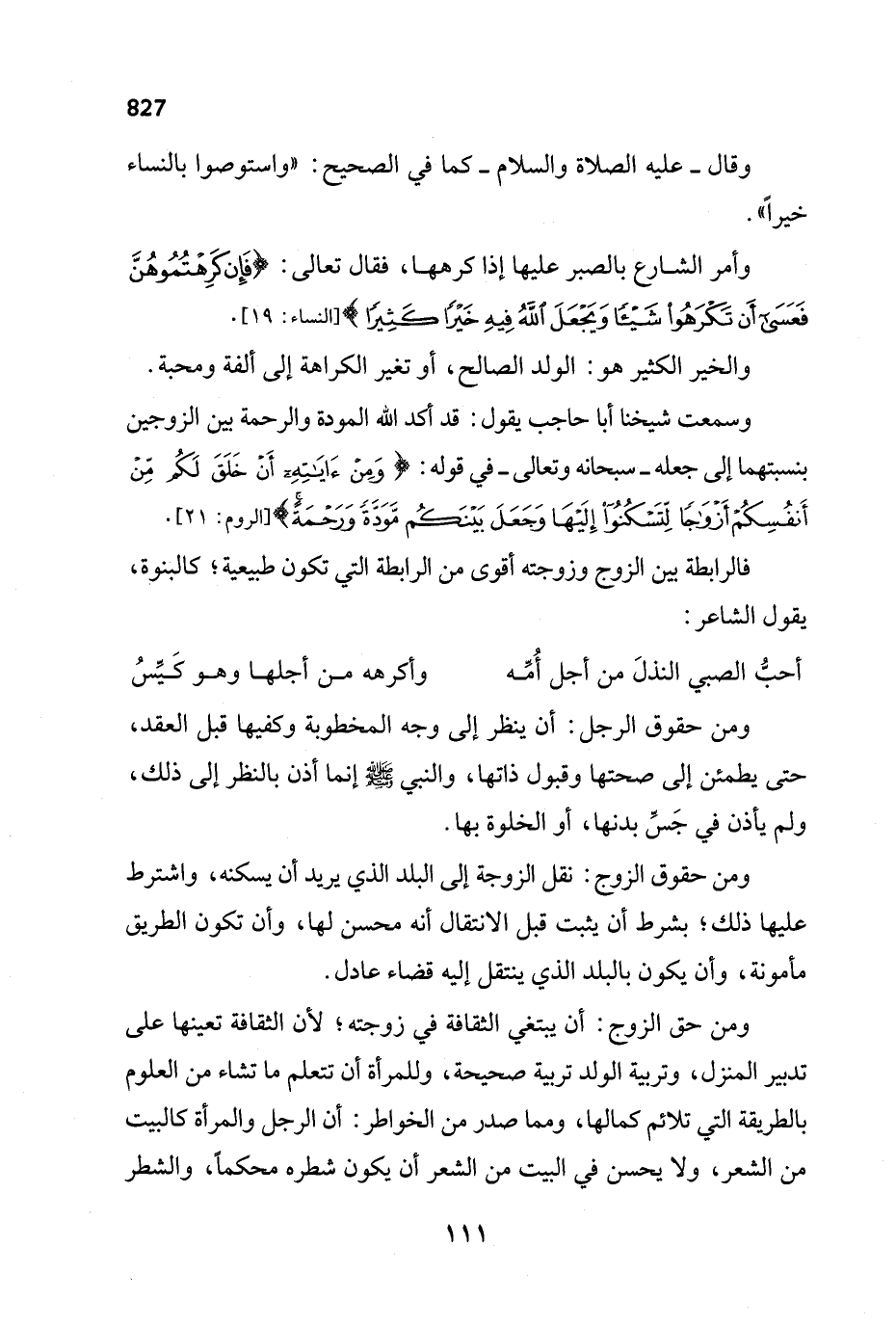 وأمر الشارع بالصبر عليها إذا كرهها، فقال تعالى: {فَإِنْ كَرِهْتُمُوهُنَّ فَعَسَى أَنْ تَكْرَهُوا شَيْئًا وَيَجْعَلَ اللَّهُ فِيهِ خَيْرًا كَثِيرًا} [النساء: 19]