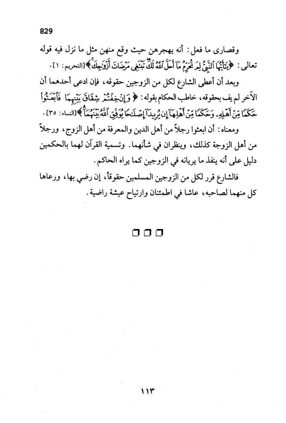 ومعناه: أن ابعثوا رجلاً من أهل الدين والمعرفة من أهل الزوج، ورجلاً من أهل الزوجة كذلك، وينظران في شأنهما. وتسمية القرآن لهما بالحكمين دليل على أنه ينفذ ما يريانه في الزوجين كما يراه الحاكم.