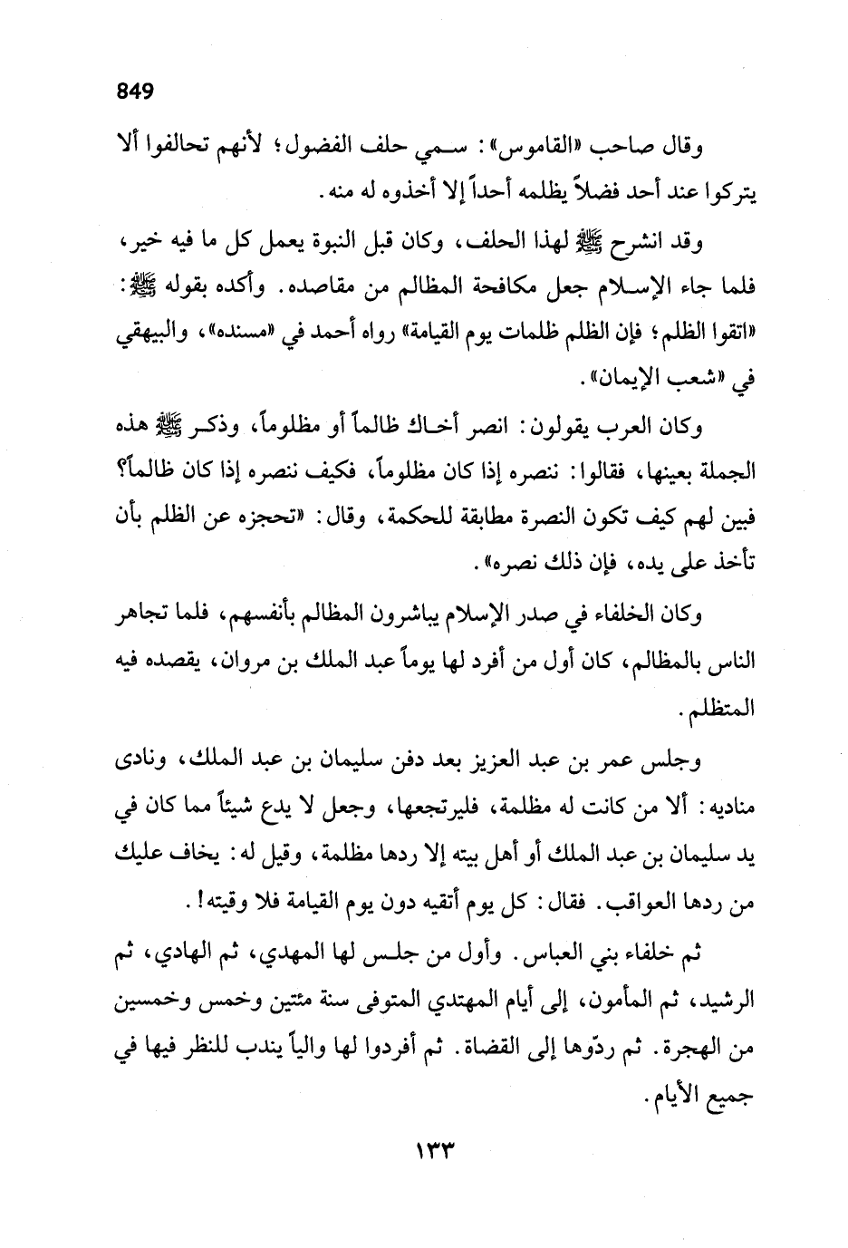وقد انشرح - صلى الله عليه وسلم - لهذا الحلف، وكان قبل النبوة يعمل كل ما فيه خير، فلما جاء الإسلام جعل مكافحة المظالم من مقاصده. وأكده بقوله - صلى الله عليه وسلم -: "اتقوا الظلم؛ فإن الظلم ظلمات يوم القيامة" رواه أحمد في "مسنده"، والبيهقي في "شعب الإيمان".