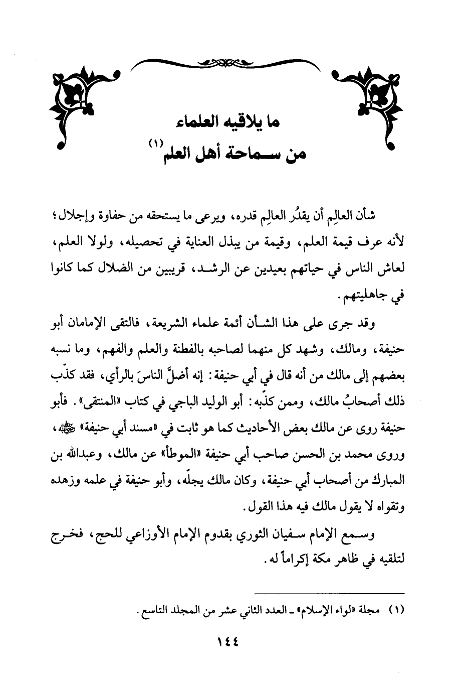 ما يلاقيه العلماء من سماحة أهل العلم (¬1)
