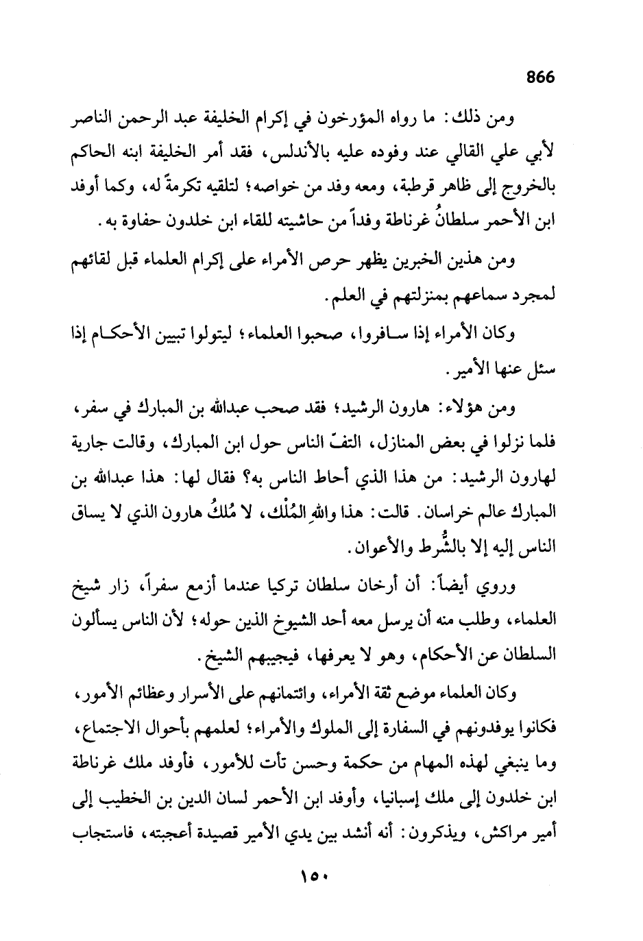 وكان الأمراء إذا سافروا، صحبوا العلماء؛ ليتولوا تبيين الأحكام إذا سئل عنها الأمير.