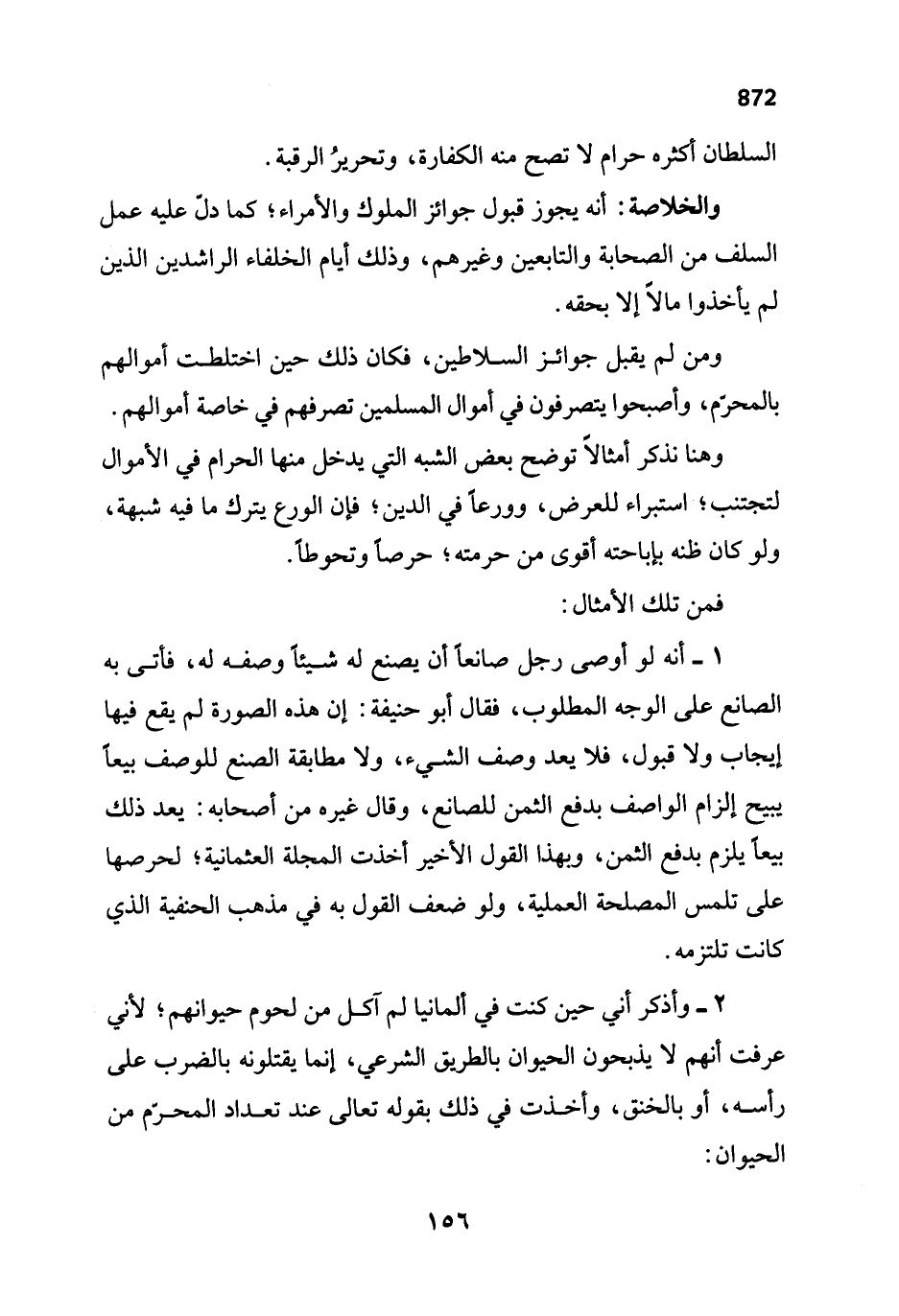 2 - وأذكر أني حين كنت في ألمانيا لم آكل من لحوم حيوانهم؛ لأني عرفت أنهم لا يذبحون الحيوان بالطريق الشرعي، إنما يقتلونه بالضرب على رأسه، أو بالخنق، وأخذت في ذلك بقوله تعالى عند تعداد المحرّم من الحيوان: