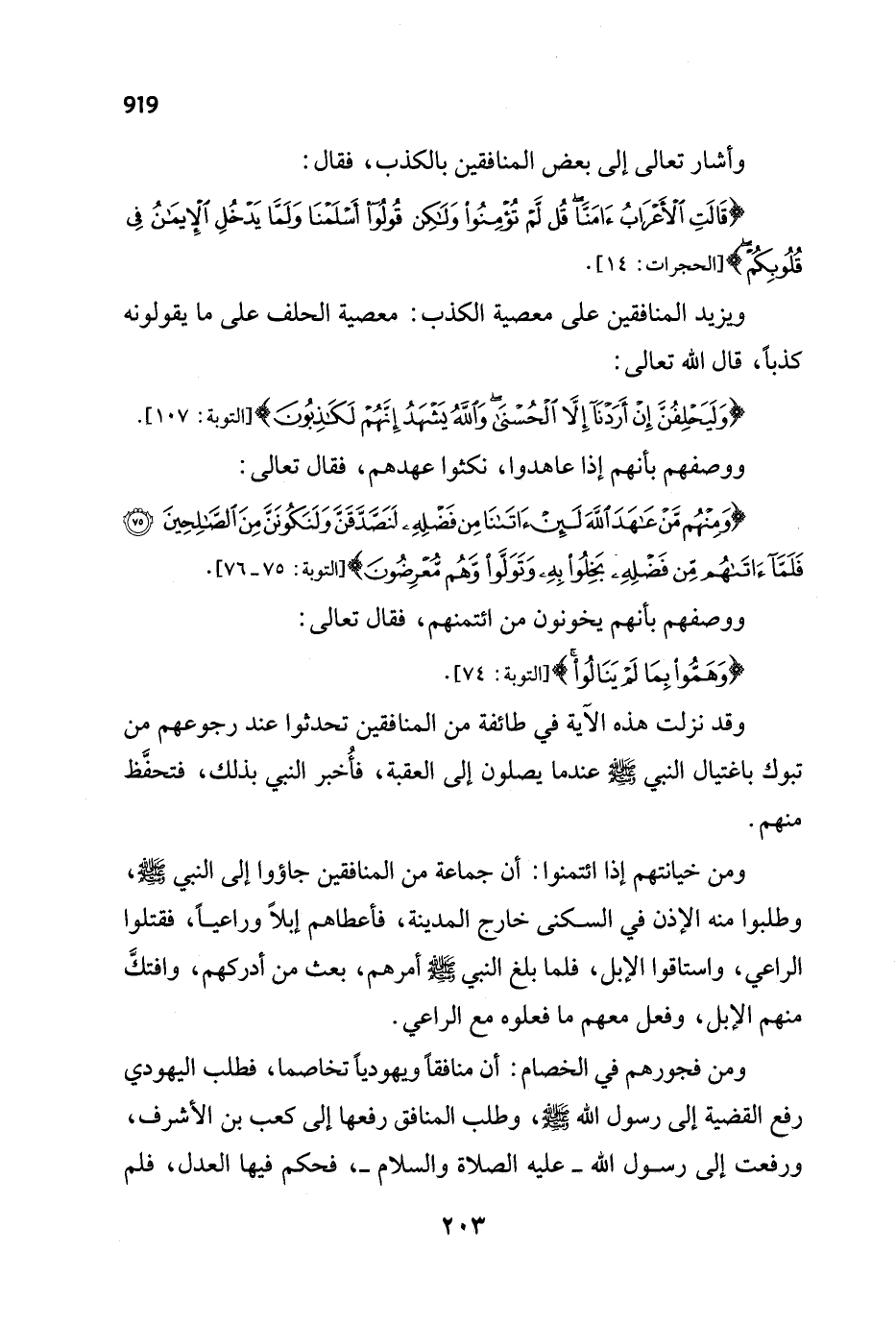 ومن فجورهم في الخصام: أن منافقاً ويهودياً تخاصما، فطلب اليهودي رفع القضية إلى رسول الله - صلى الله عليه وسلم -، وطلب المنافق رفعها إلى كعب بن الأشرف، ورفعت إلى رسول الله - عليه الصلاة والسلام -، فحكم فيها العدل، فلم