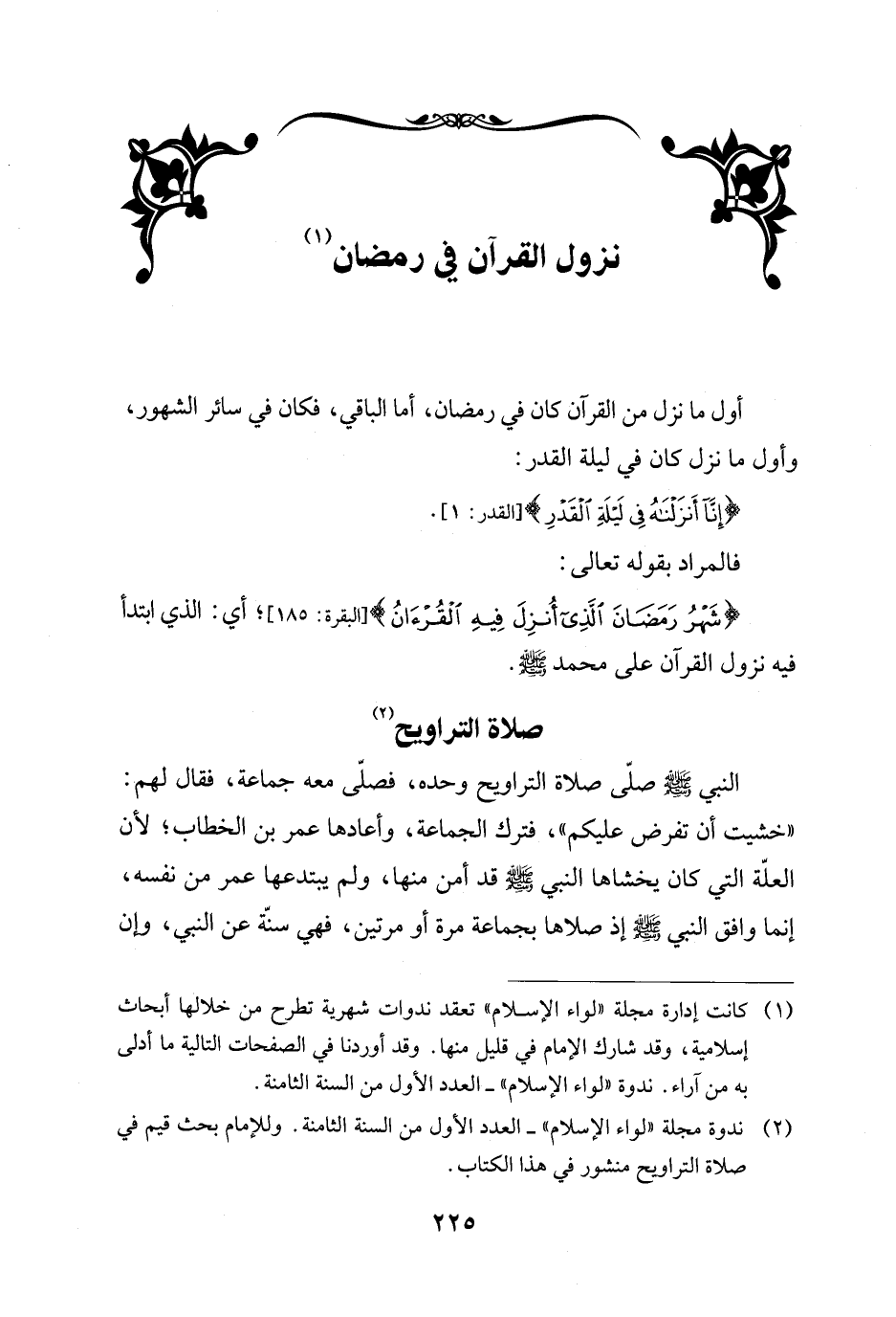 (¬2) ندوة مجلة "لواء الإسلام"- العدد الأول من السنة الثامنة. وللإمام بحث قيم في صلاة التراويح منشور في هذا الكتاب.