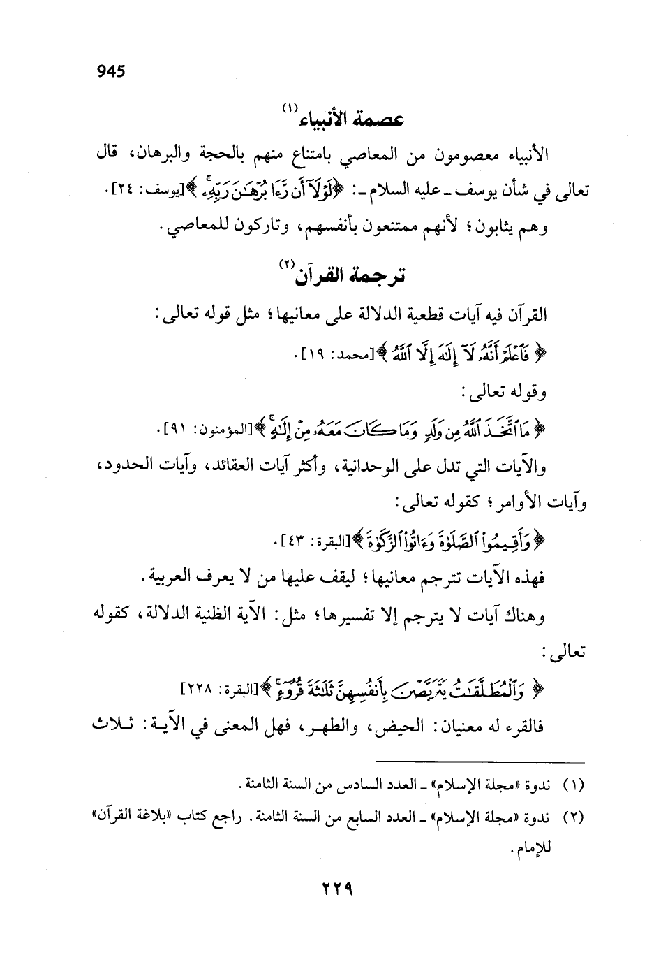 (¬2) ندوة "مجلة الإسلام"- العدد السابع من السنة الثامنة. راجع كتاب "بلاغة القرآن" للإمام.
