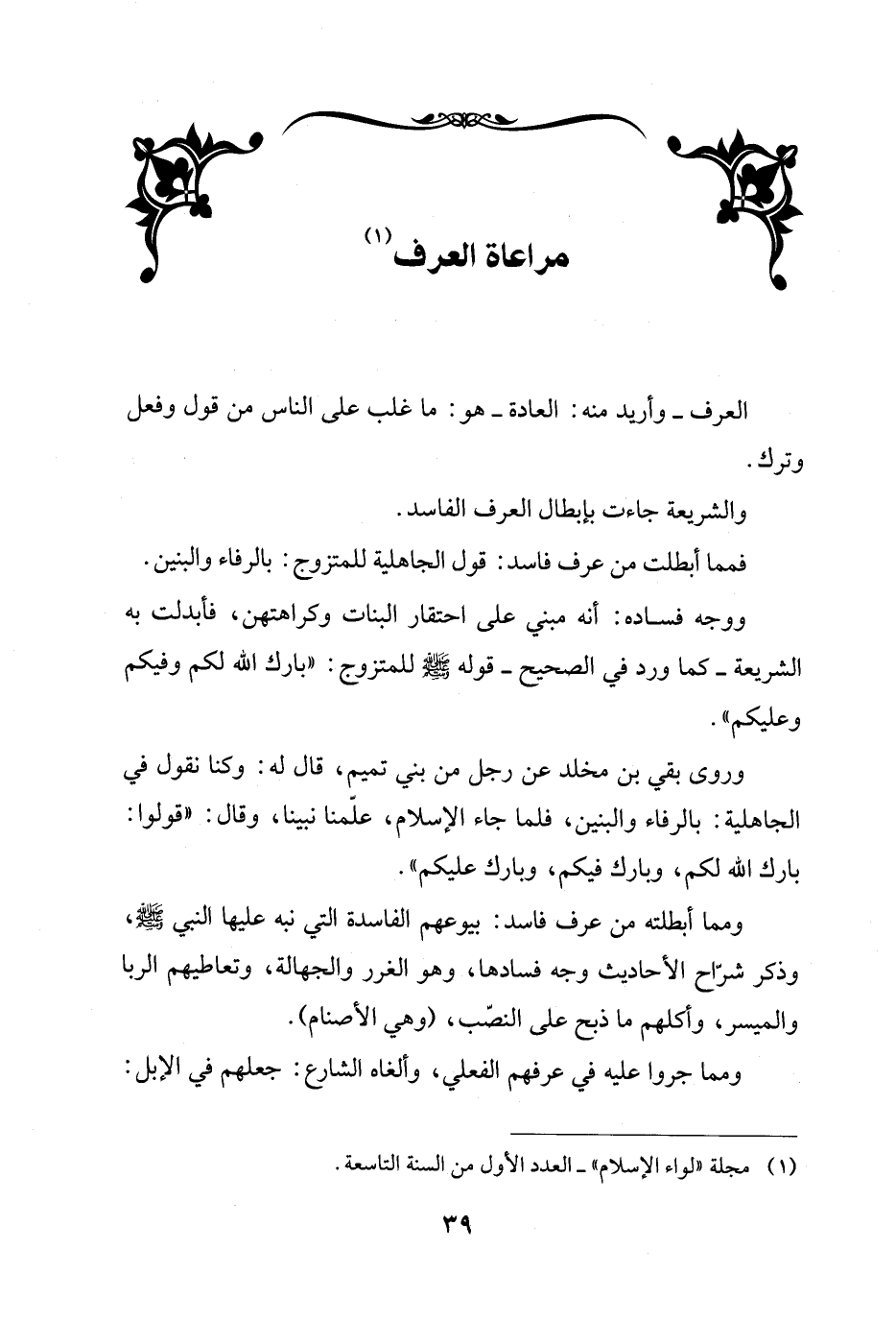 ومما أبطلته من عرف فاسد: بيوعهم الفاسدة التي نبه عليها النبي - صلى الله عليه وسلم -، وذكر شرّاح الأحاديث وجه فسادها، وهو الغرر والجهالة، وتعاطيهم الربا والميسر، وأكلهم ما ذبح على النصّب، (وهي الأصنام).