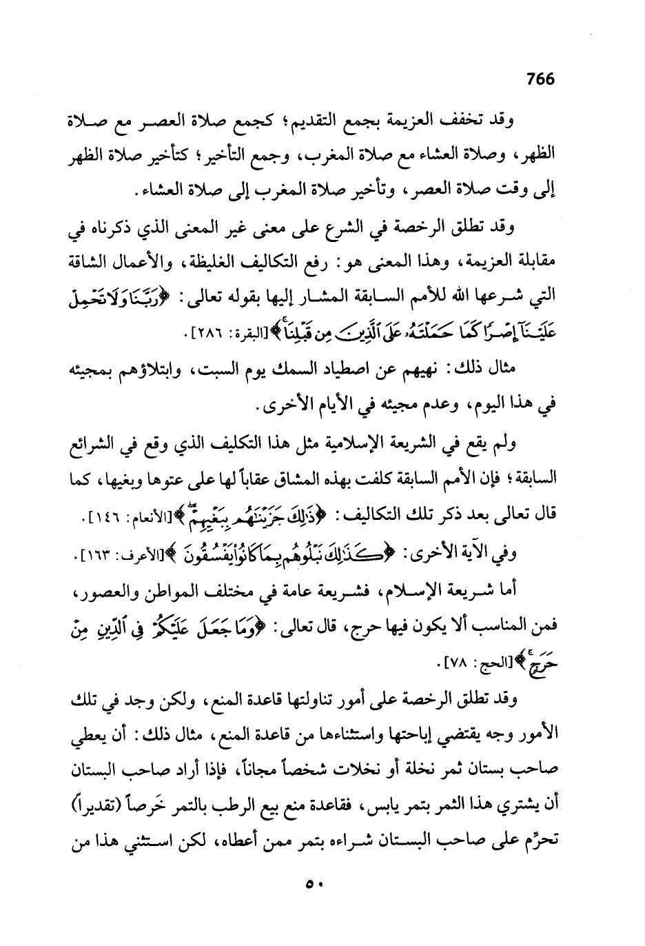 وقد تطلق الرخصة في الشرع على معنى غير المعنى الذي ذكرناه في مقابلة العزيمة، وهذا المعنى هو: رفع التكاليف الغليظة، والأعمال الشاقة التي شرعها الله للأمم السابقة المشار إليها بقوله تعالى: {رَبَّنَا وَلَا تَحْمِلْ عَلَيْنَا إِصْرًا كَمَا حَمَلْتَهُ عَلَى الَّذِينَ مِنْ قَبْلِنَا} [البقرة: 286].
