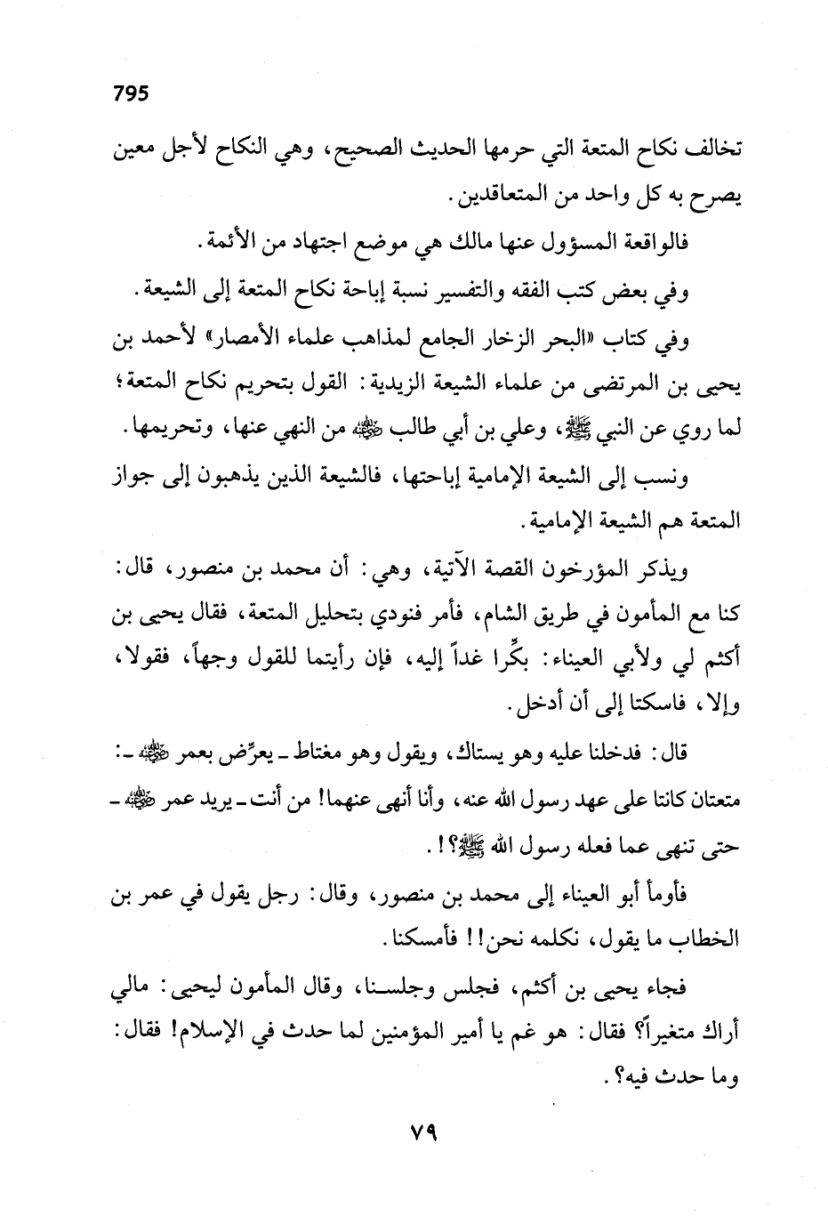 وفي كتاب "البحر الزخار الجامع لمذاهب علماء الأمصار" لأحمد بن يحيى بن المرتضى من علماء الشيعة الزيدية: القول بتحريم نكاح المتعة؛ لما روي عن النبي - صلى الله عليه وسلم -، وعلي بن أبي طالب - رضي الله عنه - من النهي عنها، وتحريمها.