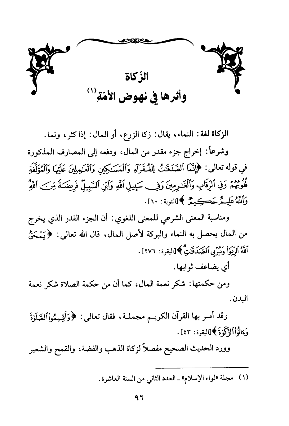 الزّكاة وأثرها في نهوض الأمّةِ (¬1)