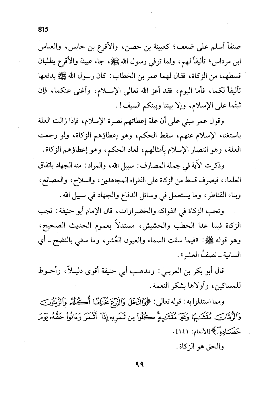 قال أبو بكر بن العربي: ومذهب أبي حنيفة أقوى دليلاً، وأحوط للمساكين، وأولاها بشكر النعمة.