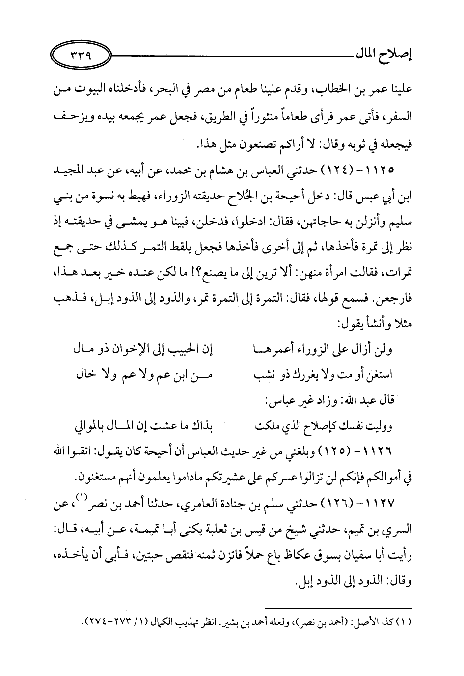 كتاب إصلاح المال لابن أبي الدنيا - ط أطلس الخضراء = مقابل
