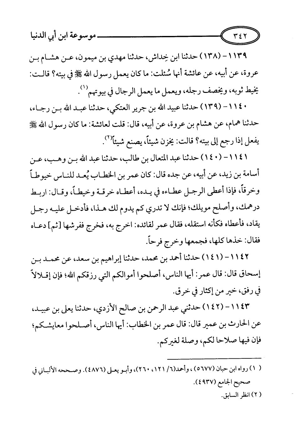 كتاب إصلاح المال لابن أبي الدنيا - ط أطلس الخضراء = مقابل