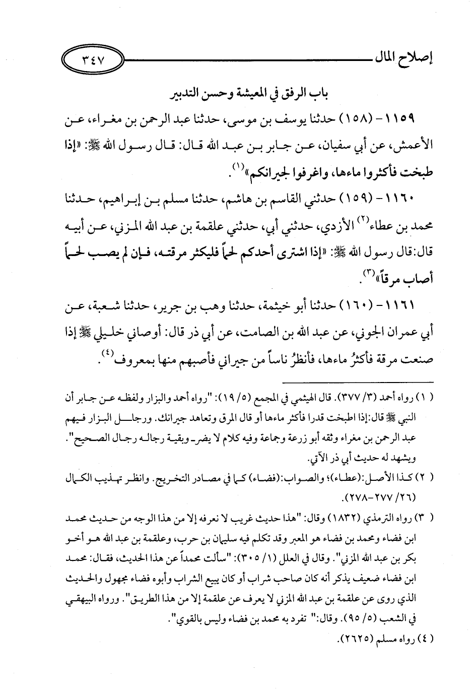 كتاب إصلاح المال لابن أبي الدنيا - ط أطلس الخضراء = مقابل
