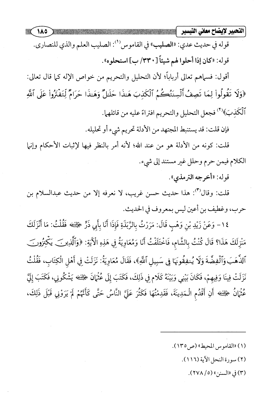 قوله في حديث عدي: "الصليب" في القاموس (¬1): الصليب العلم والذي للنصارى.
