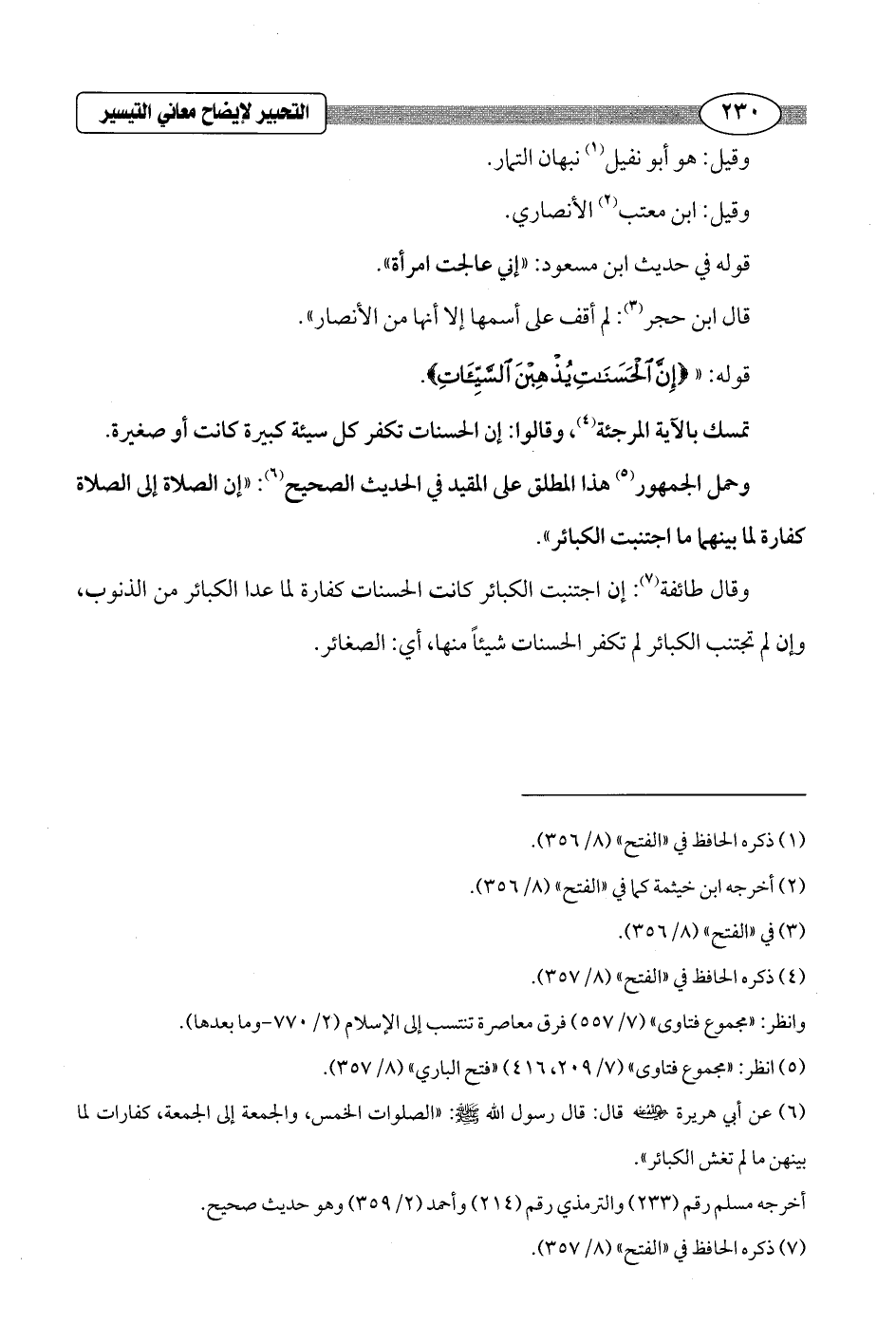 قوله: " {إِنَّ الْحَسَنَاتِ يُذْهِبْنَ السَّيِّئَاتِ}.