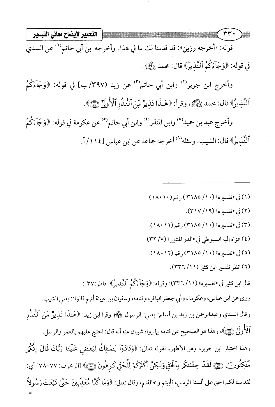 قال ابن كثير في "تفسيره" (11/ 336): وقوله: {وَجَاءَكُمُ النَّذِيرُ} [فاطر: 37]: