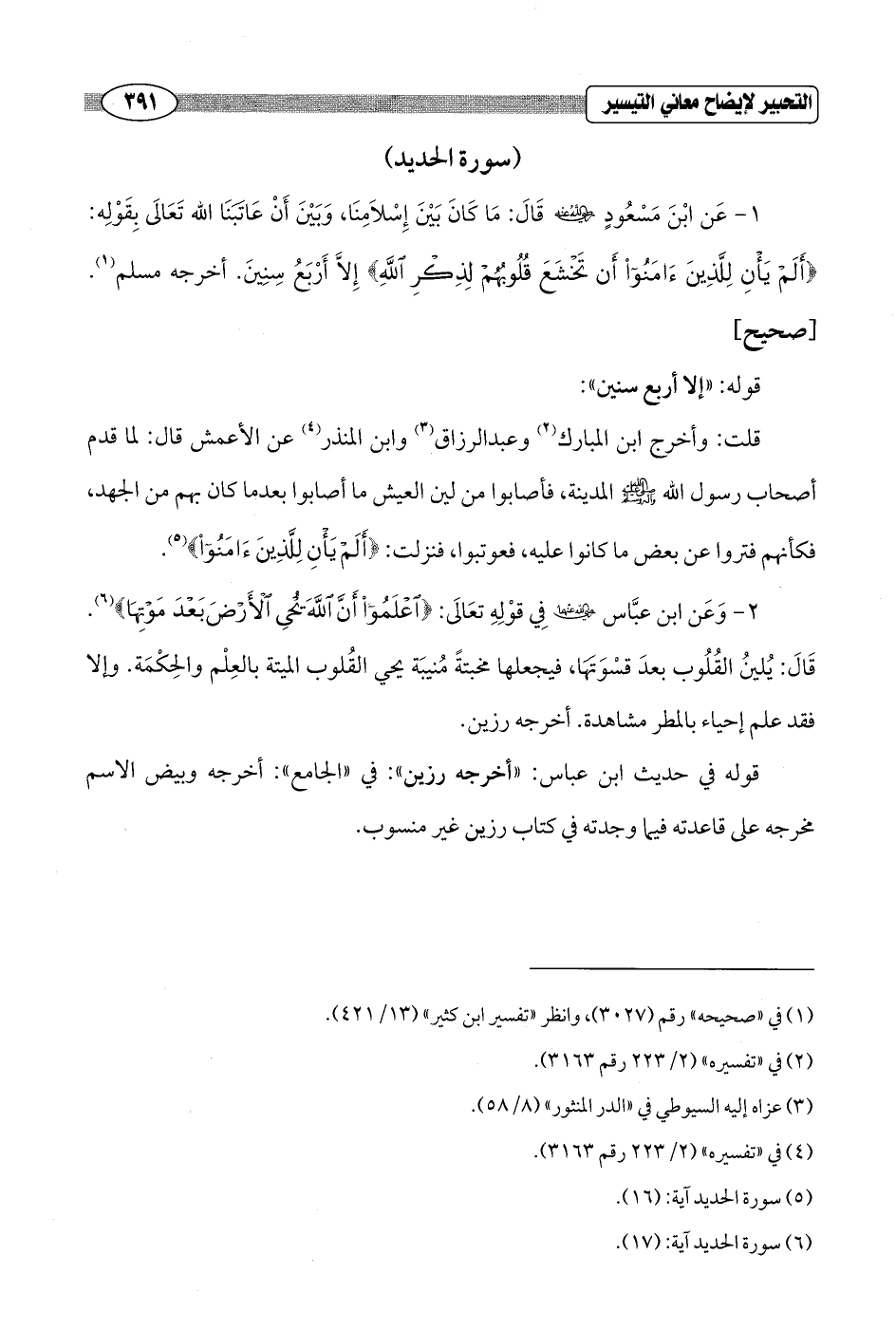 1 - عَن ابْنَ مَسْعُودٍ - رضي الله عنه - قَالَ: مَا كَانَ بَيْنَ إِسْلاَمِنَا، وَبَيْنَ أَنْ عاتَبَنَا الله تَعَالَى بِقَوْلِه: {أَلَمْ يَأْنِ لِلَّذِينَ آمَنُوا أَنْ تَخْشَعَ قُلُوبُهُمْ لِذِكْرِ اللَّهِ} إِلاَّ أَرْبَعُ سِنِينَ. أخرجه مسلم (¬1). [صحيح]