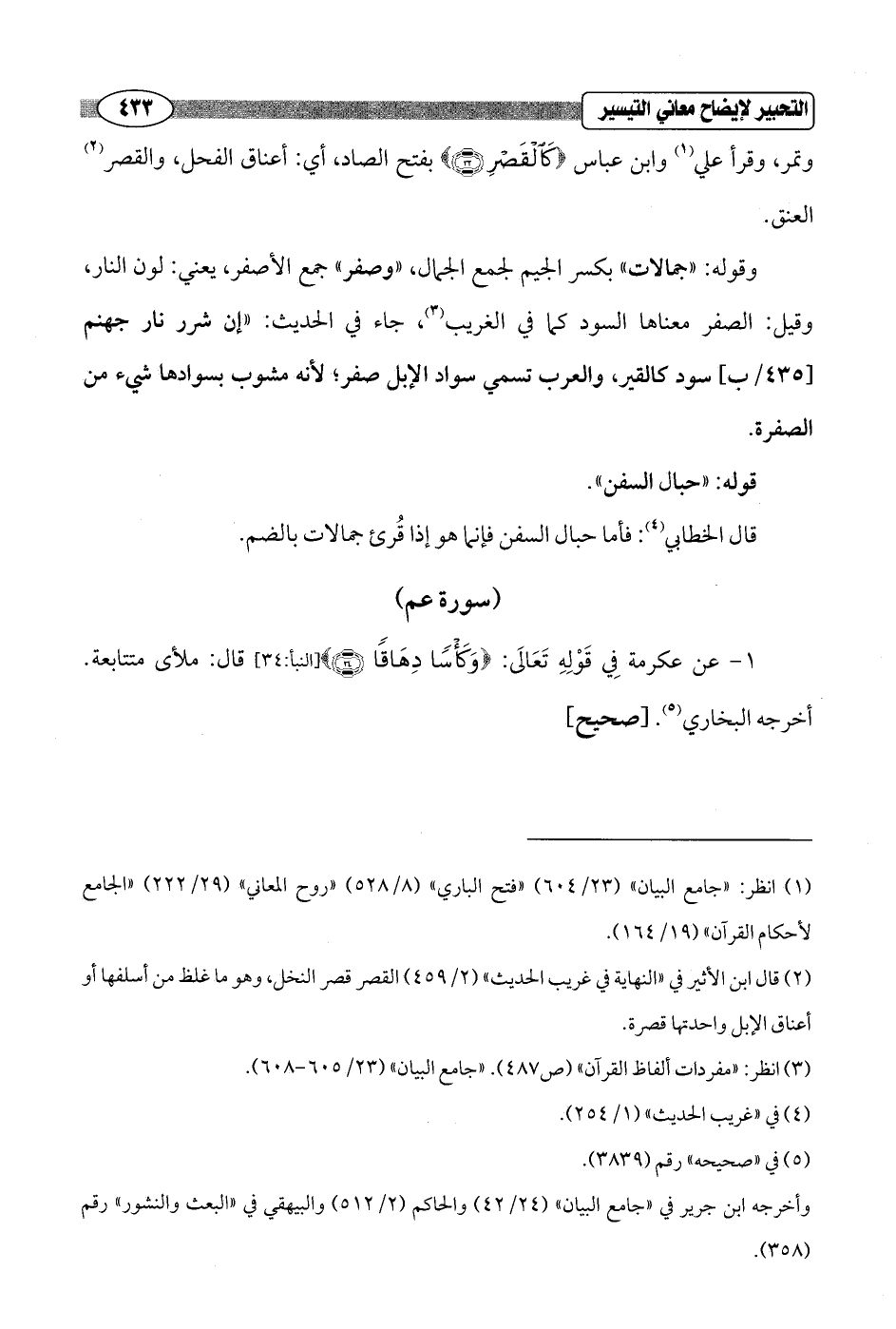 (¬1) انظر: "جامع البيان" (23/ 604) "فتح الباري" (8/ 528) "روح المعاني" (29/ 222) "الجامع لأحكام القرآن" (19/ 164).